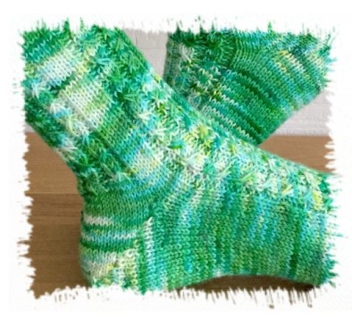 Bein 72, Fuß 68 Maschen auf Nadelstärke 2,25 mm